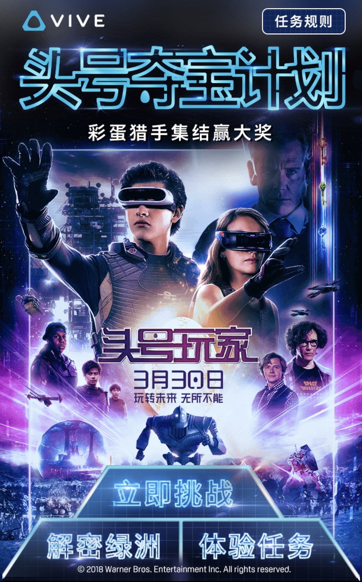 《头号玩家》已经在全国热映中,豆瓣评分高达9.1,可谓是2018年口碑最好的电影之一。Vive作为独家VR合作伙伴,开启了一系列线上线下的主题活动,希望让更多大众有机会了解VR,接触VR,感受VR。话不多说,快来参与吧!