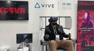 哥斯拉来了,快跑!Oh 不对,我是战机飞行员,要去打死它!《哥斯拉VR》是日本最大的VR体验店VR Zone的大热门游戏,这个座驾经常传来尖叫不断~