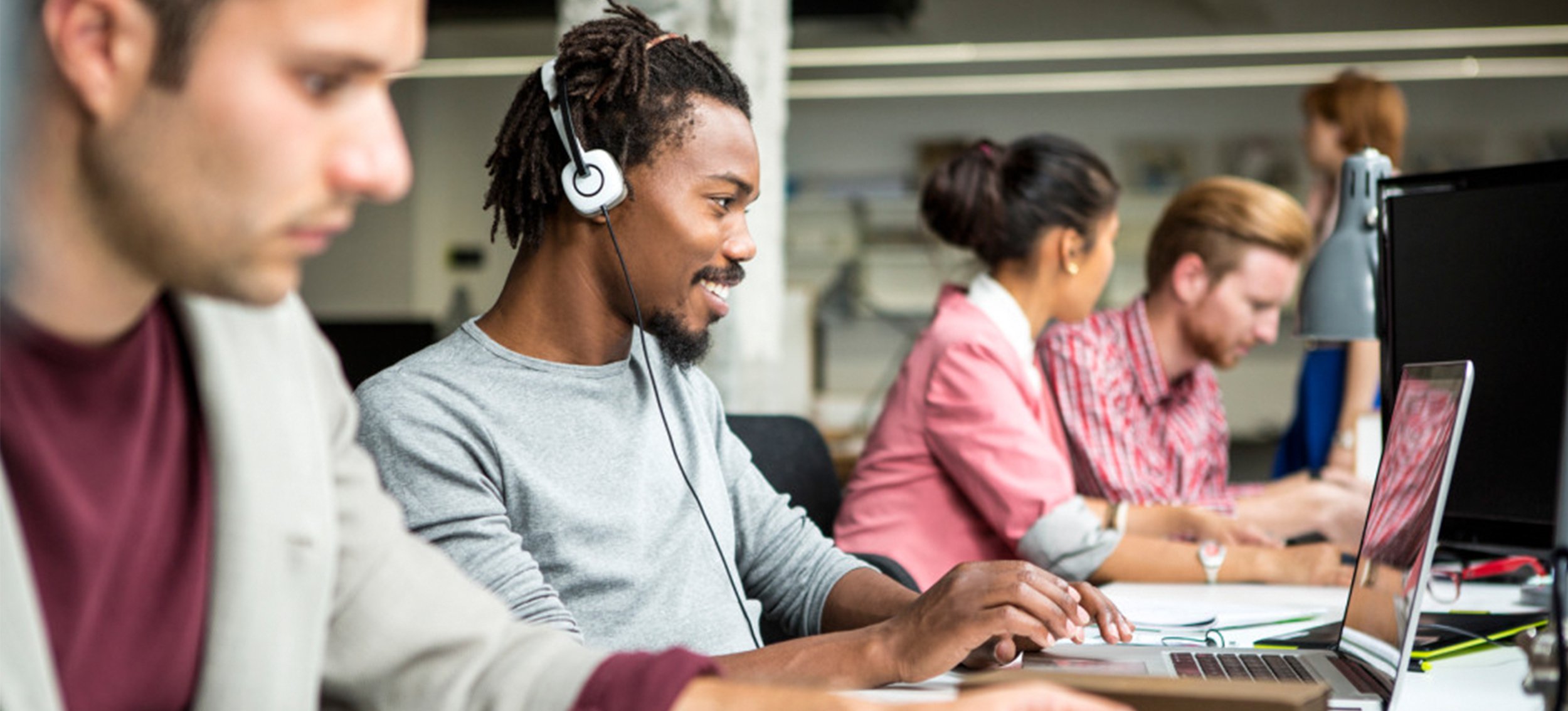 Multiethnic group of young business people working at their office.