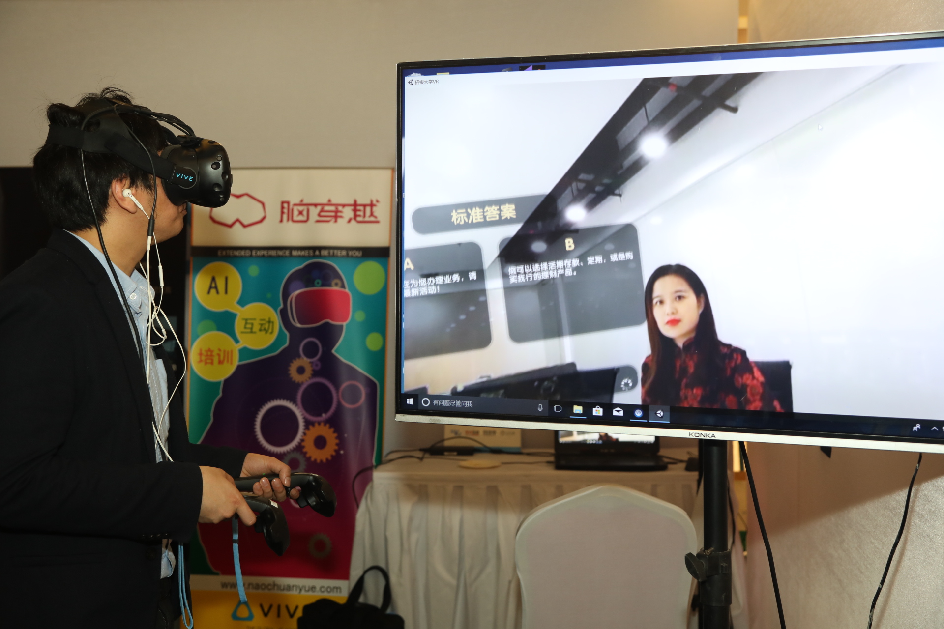 脑穿越利用AI技术,让员工通过VR/AR以情境学习的方式短时间熟悉业务流程的专业知识,练习优质的的服务技巧,比如信用卡销售话术练习、应对醉酒的银行客户。被金融客户称赞其产品,5天VR学习=10年经验。