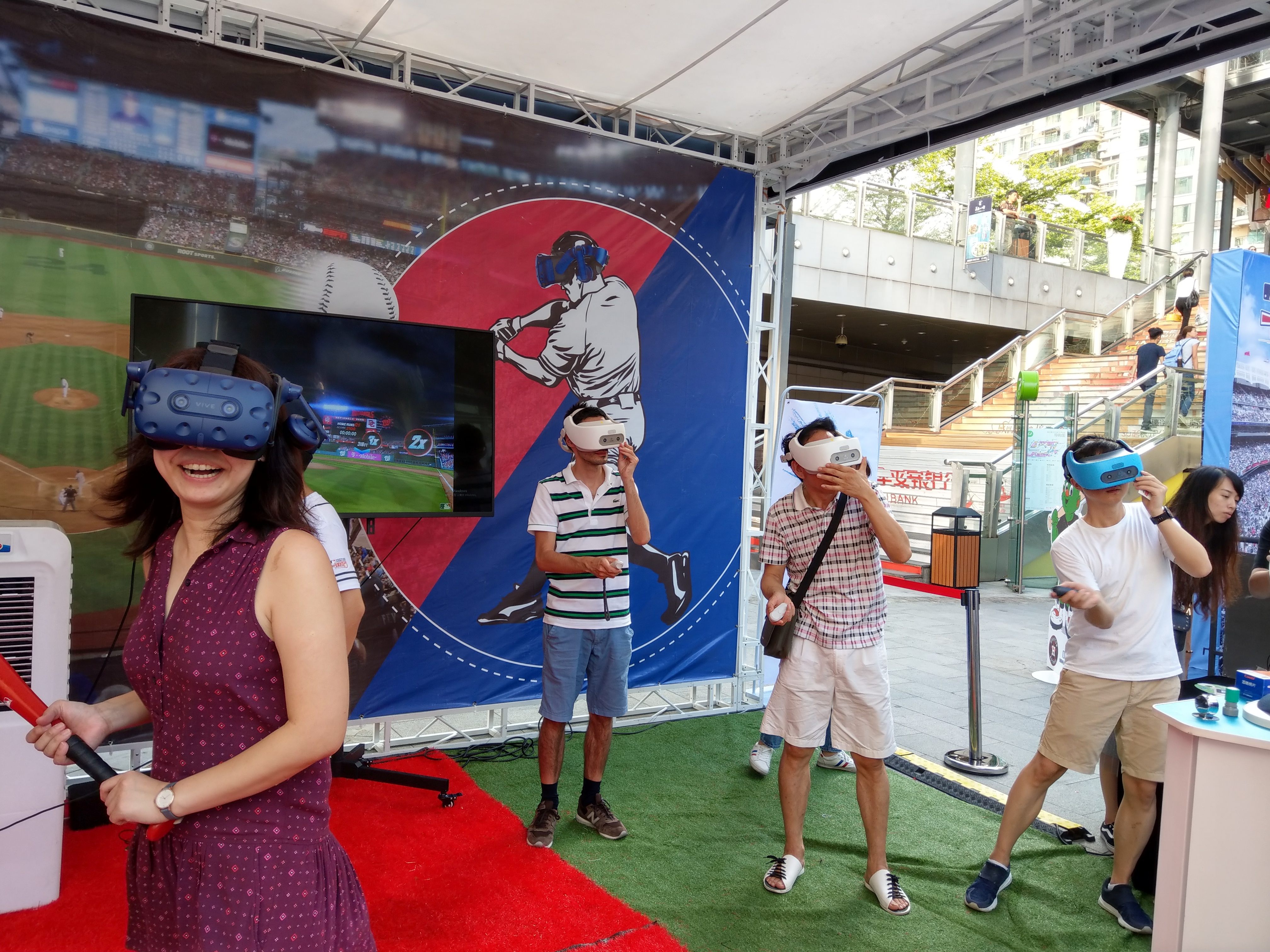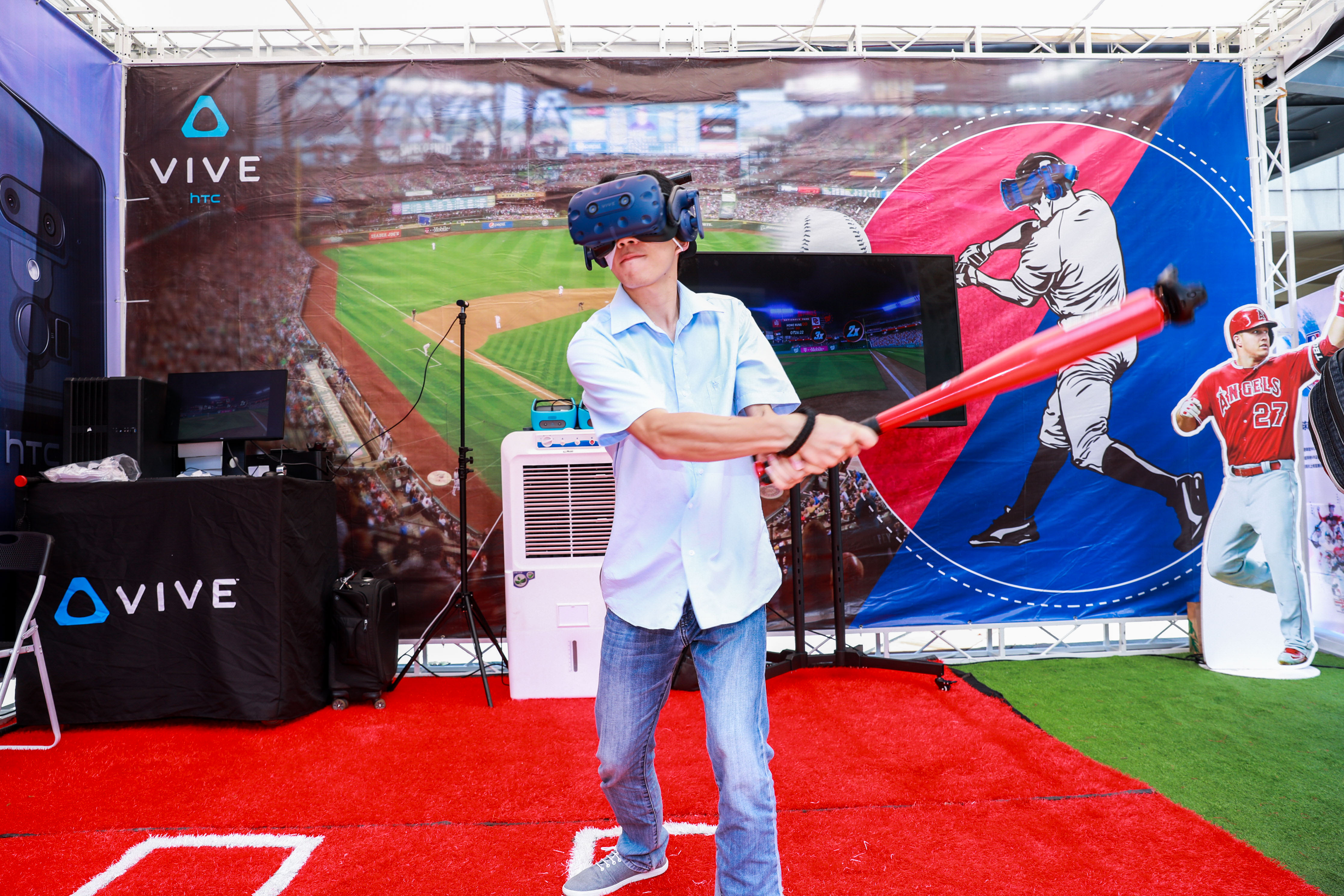 在这里可以戴上最具沉浸感的Vive Pro专业版+手握棒球棒,或是Vive Focus高端VR一体机体验到Vive与MLB联合打造的精彩VR棒球内容《MLB HomeRun Derby VR》,许多男女老少体验后都连声喊酷!