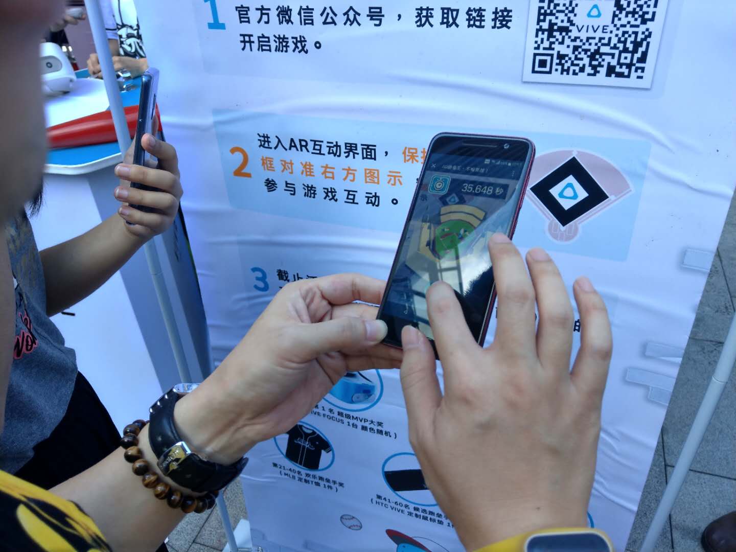 值得一提的是,现场除了可以体验VR棒球外,还有趣味的AR跑垒王有奖活动。