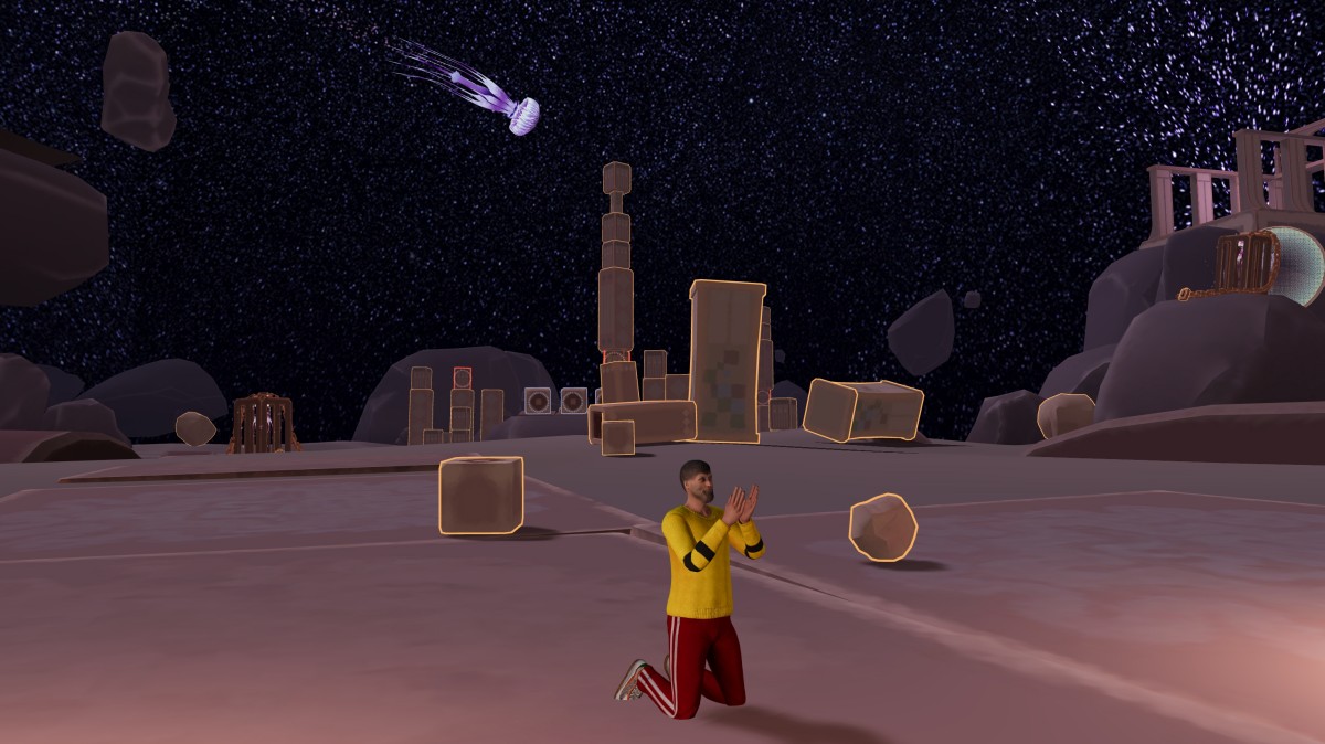 Finally, here's a photo of Sun Wukong breaking through the dimensional barrier and traveling to the Tatooine planet from Star Wars. This is a world I painstakingly created using the PlayCanvas engine. Although no coding is required, it still took a lot of time for a beginner like me.